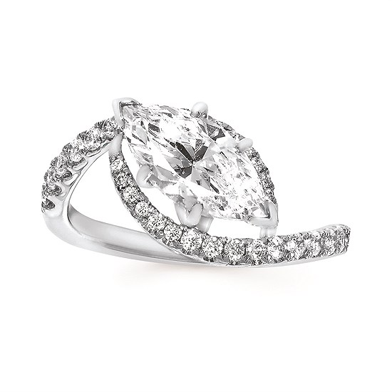 Forever ElegantĀ® 1/3 Ctw. Diamond Semi Mount shown with 1 1/2 Ct. Marquise Center Diamond in 14K Gold