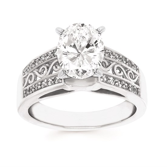 Heritage Classic Bridal: 1/8 Ctw. Diamond Semi Mount shown with 2 Ct. Oval Center Diamond in 14K Gold