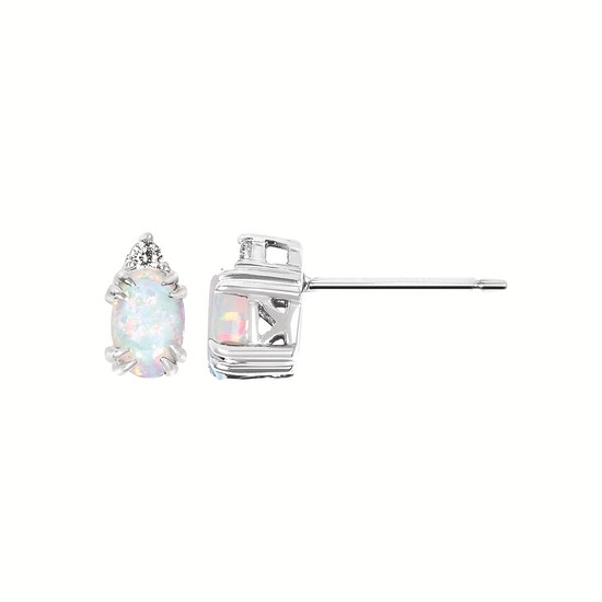 0.04Ctw Diamond & Created Sapphire Birthstone Earrings